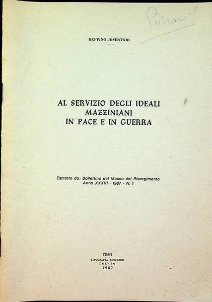 Al servizio degli ideali mazziniani in pace e in guerra. | Rare and modern books | Disertori, Beppino.