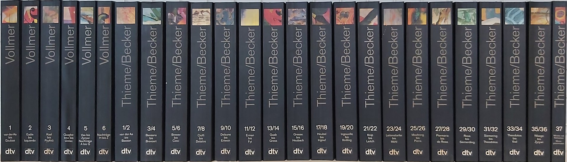 43 Vol. in 25 Tome. Vollmer 6 tome. Thieme/Becker 37 vol. in 19 tome. German Text. Munchen, 1992; 25 vols., paperback, pp. 20000, cm 16x24.