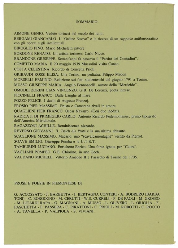 (Codice LO/2545) In 8° 264 pp. Interessanti saggi su Pomba, Gramsci, Nicco, Gech, ecc. Foto dell'indice visibile. Simpatica dedica, allegata recensione. Brossura originale. Ottimo e fresco volume. ~~~ SPEDIZIONE IN ITALIA SEMPRE TRACCIATA