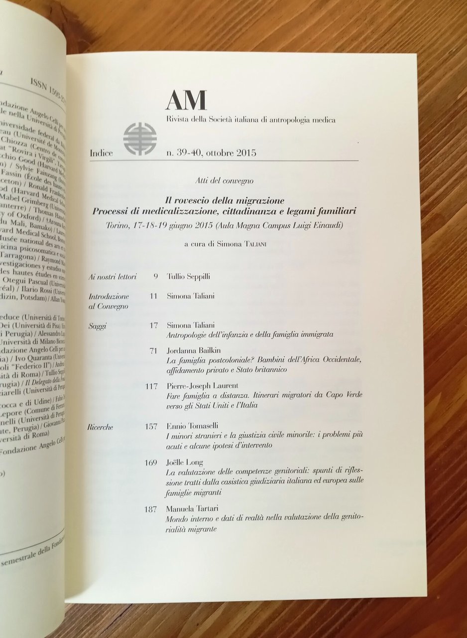 AM. Rivista della Società Italiana di Antropologia Medica - vol. 39-40, ottobre 2015 | Rare and modern books | Seppilli, Tullio (direttore), Taliani, Simona