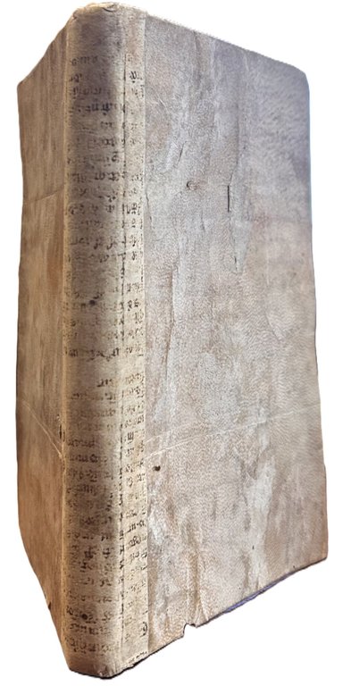 >in-8 (164x100 mm), , ff. 64, carattere corsivo, testo su 30 linee con spazi per lettere guida, ancora aldina al frontespizio e in fine. Legatura in piena pergamena posteriore. Prima edizione, dedicata a Marco Mollino, di una delle primissime grammatiche della lingua italiana mai stampate, pubblicata cinque anni dopo le Regole di F. Fortunio (1516) e tre anni prima delle celebri Prose della volgar lingua di P. Bembo (1525). Liburnio (ca. 1477-1557) fu uno dei pochi autori viventi pubblicati dalla tipografia Aldina, «scrisse versi petrarcheschi sul modello di Pietro Bembo, ma nel suo Le vulgari elegantie (1521) e Le tre fontane (1526) consigliava di imitare Dante, oltre che Petrarca e Boccaccio» (Oxford Companion to Italian Literature).