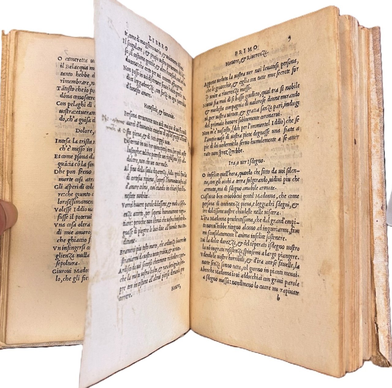 Buon esemplare, tracce di polvere sul foglio di titolo, lieve alone d'umido nel margine inferiore bianco dei fogli 40-64, più esteso nelle ultime pagine, nota di possesso al titolo, manicule e qualche antica sottolineatura sparse.. UCLA 205; Adams L655; Cataldi Palau 72; Edit16 37646; Gamba 1477; Renouard 92/11; USTC 838130