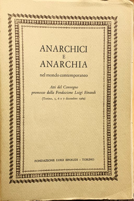 Anarchici e anarchia nel mondo contemporaneo. Atti del Convegno promosso dalla Fondazione Luigi Einaudi (Torino, 5, 6 e 7 dicembre 1969)
