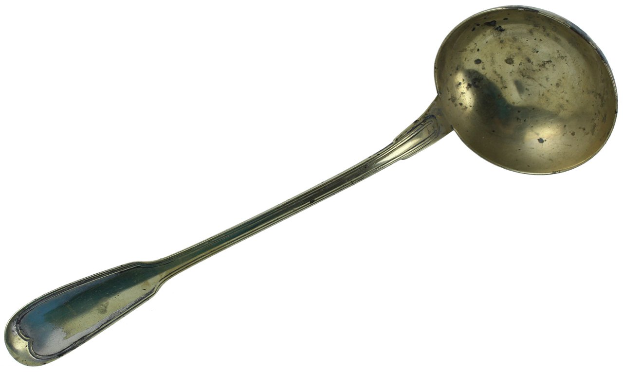 ANTICO MESTOLO ALPACCA dorata, inizio '900 cm 33. | Rare and modern books |