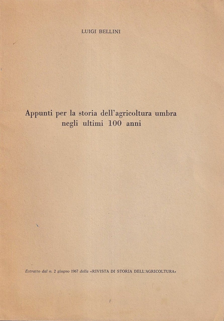 Appunti per la storia dell'agricoltura umbra negli ultimi 100 anni | Rare and modern books | Bellini, Luigi