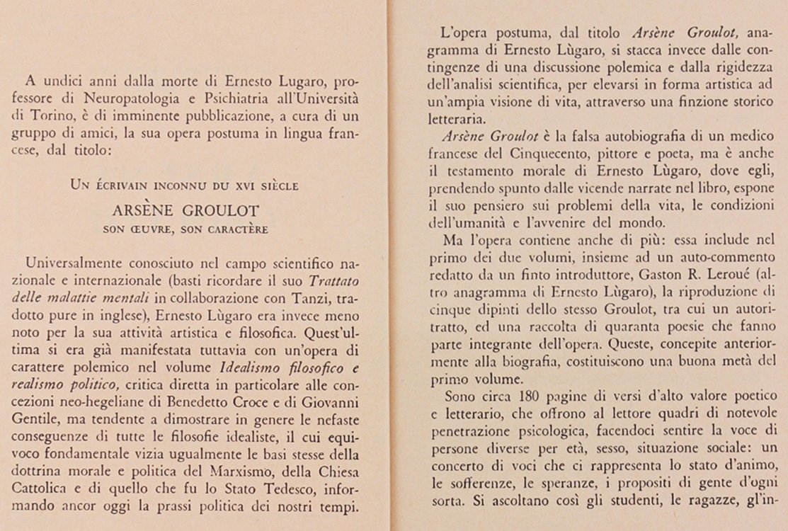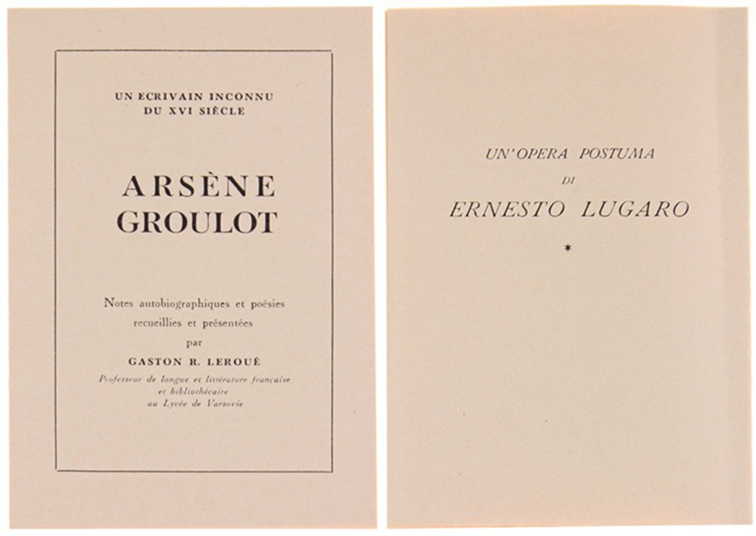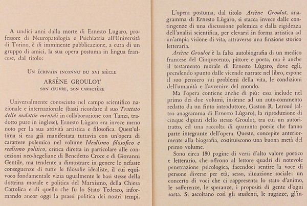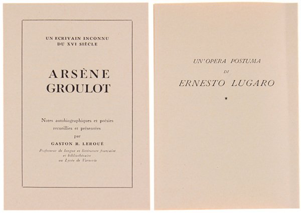 ARSENE GROULOT. Un écrivain inconnu du XVI siècle. Son oeuvre, son caractère. | Rare and modern books | Leroué Gaston R. (Lugaro Ernesto).