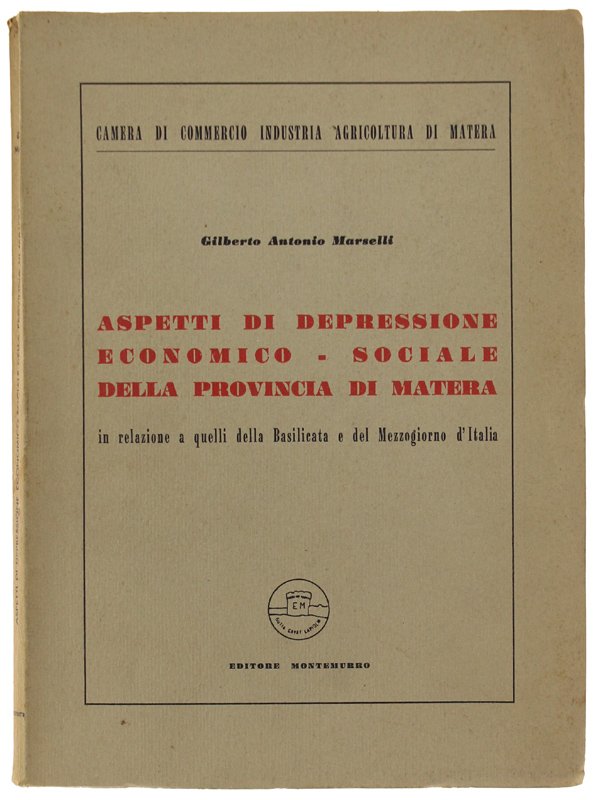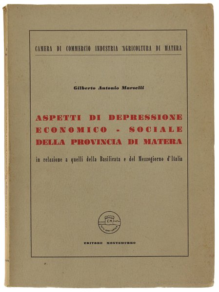 ASPETTI DI DEPRESSIONE ECONOMICO-SOCIALE DELLA PROVINCIA DI MATERA in relazione a quelli della Basilicata e del Mezzogiorno d'Italia. | Rare and modern books | Marselli Gilberto Antonio