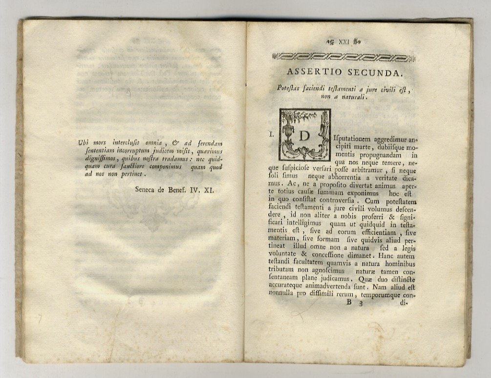 Assertiones tres ex jure canonico, civili et naturali publice propugnandae a Cajetano Rizzardi Seminarii Patavini alumno auspice illustr.mo ac rever.mo D.D. Nicolao Antonio Justiniano episcopo Patavino, praeceptore & adjutore Angelo Rubbi [.]. | Rare and modern books | Rizzardi Gaetano.
