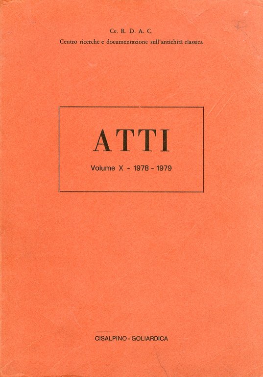 Atti del Centro Ricerche e Documentazione sull'Antichità Classica. 10. 1978 - 1979 | Rare and modern books | CERDAC
