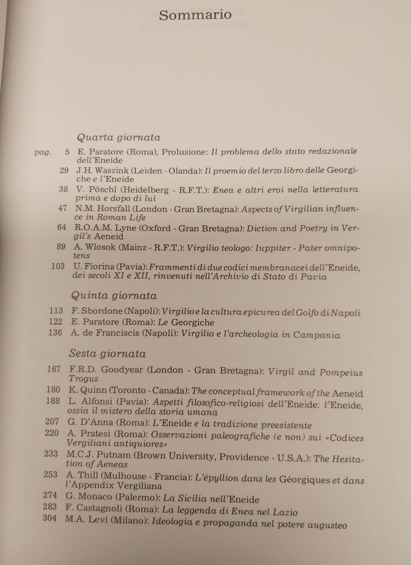 ATTI DEL CONVEGNO MONDIALE SCIENTIFICO di Studi su Virgilio. A cura dell’Accademia Nazionale Virgiliana. Volume secondo.