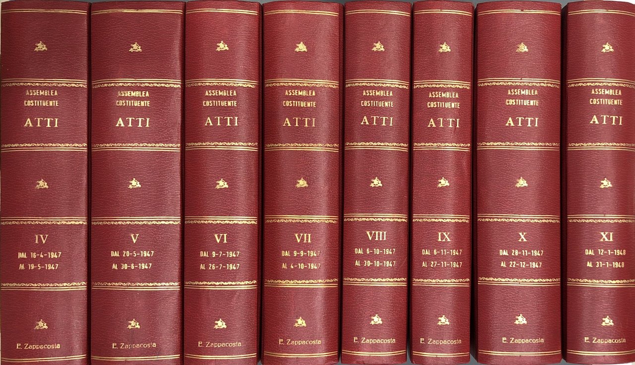 Atti della Assemblea Costituente. Vol. IV - Discussioni dal 16 aprile 1947 al 19 maggio 1947; Vol. V - Discussioni dal 20 maggio 1947 al 30 giugno 1947; Vol. VI - Discussioni dal 9 luglio 1947 al 26 luglio 1947; Vol. VII - Discussioni dal 9 settembre 1947 al 4 ottobre 1947; Vol. VIII - Discussioni dal 6 ottobre 1947 al 30 ottobre 1947; Vol. IX - Discussioni dal 6 novembre 1947 al 27 novembre 1947; Vol. X - Discussioni dal 28 novembre 1947 al 22 dicembre 1947; Vol. XI - Discussioni dal 12 gennaio 1948 al 31 gennaio 1948 | Rare and modern books | Assemblea Costituente (2 Giugno 1946 - 31 Gennaio 1948) - Camera, Dei Deputati