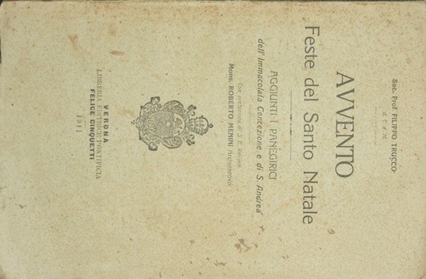 Aggiunti i panegirici dell'Immacolata Concezione e di S. Andrea - Con prefazione di S. E. Rev.ma Mons. Roberto Menini Arcivescovo - in 16° - pp.VIII + 250 - Brossura editoriale - Strappo senza mancanze al dorso, rare sottolineature a penna in pochissime pagine
