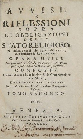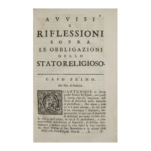 Avvisi e riflessioni sopra le obbligazioni dello stato religioso. Vol. II | Rare and modern books | Anonimo