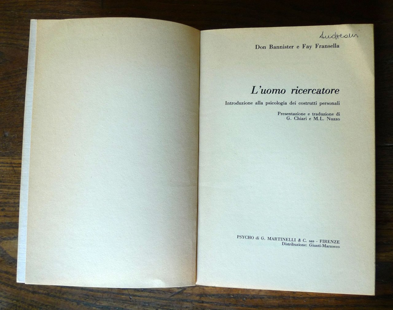 Bannister/Fransella,L'UOMO RICERCATORE,1986[psicologia dei costrutti personali | Rare and modern books |