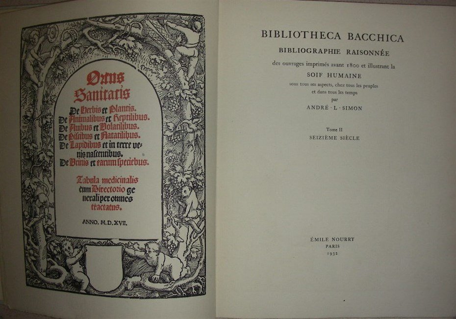 BIBLIOTHECA BACCHICA. Bibliographie raisonnèe des ouvrages imprimés avant 1800 et illustrant la soif humaine sous tous ses aspects chez tous les peuples et dans tous les temps par. | Rare and modern books | Simon L. André.