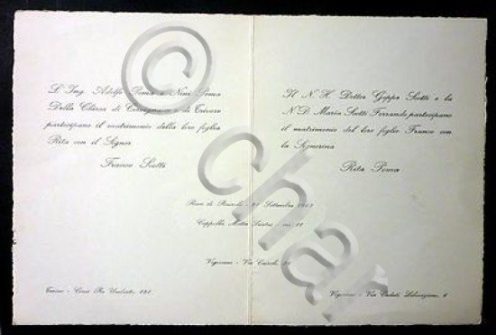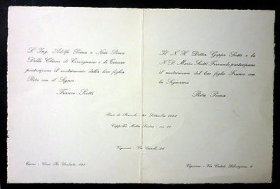 Biglietto Invito Nozze - Franco Scotti e Rita Poma - 1963 | Rare and modern books |