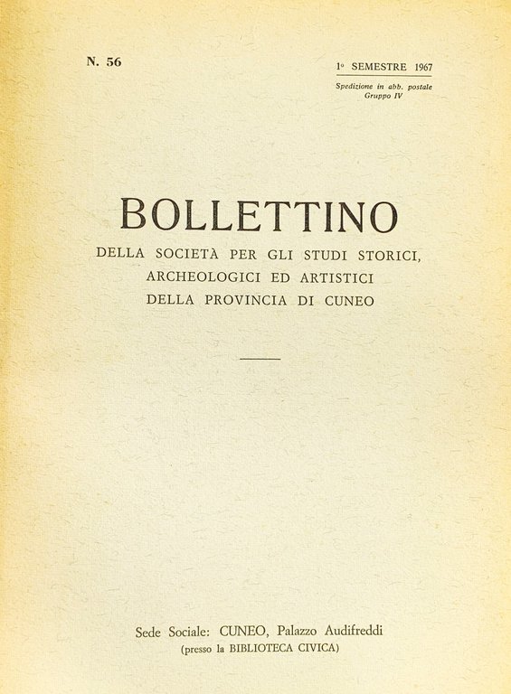 Bollettino della Società per gli Studi Storici, Archeologici ed Artistici della Provincia di Cuneo (n. 56, 1^ semestre 1967)