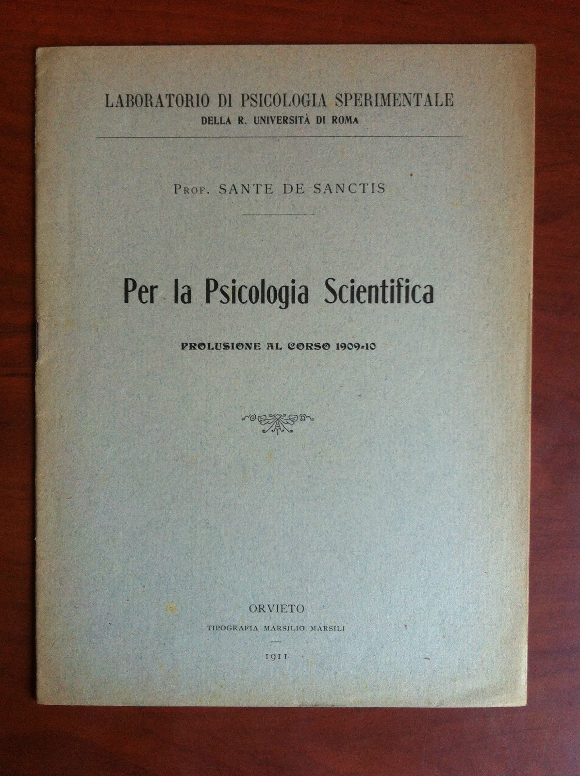 Brossura originalePer la psicologia ScientificaProf. Sante De Sanctisprolusione al corso 1909-10Laboratorio di Psicologia Sperimentale della R. Università di Roma 191112 pagine - formato 17x24,5 cmin ottime condizioni (15 g)E17818