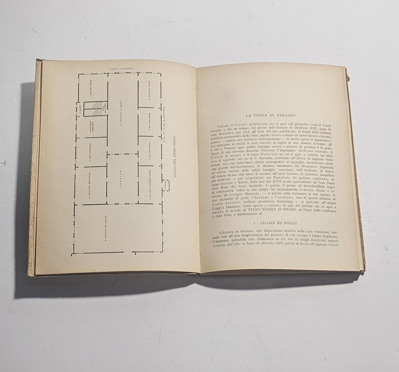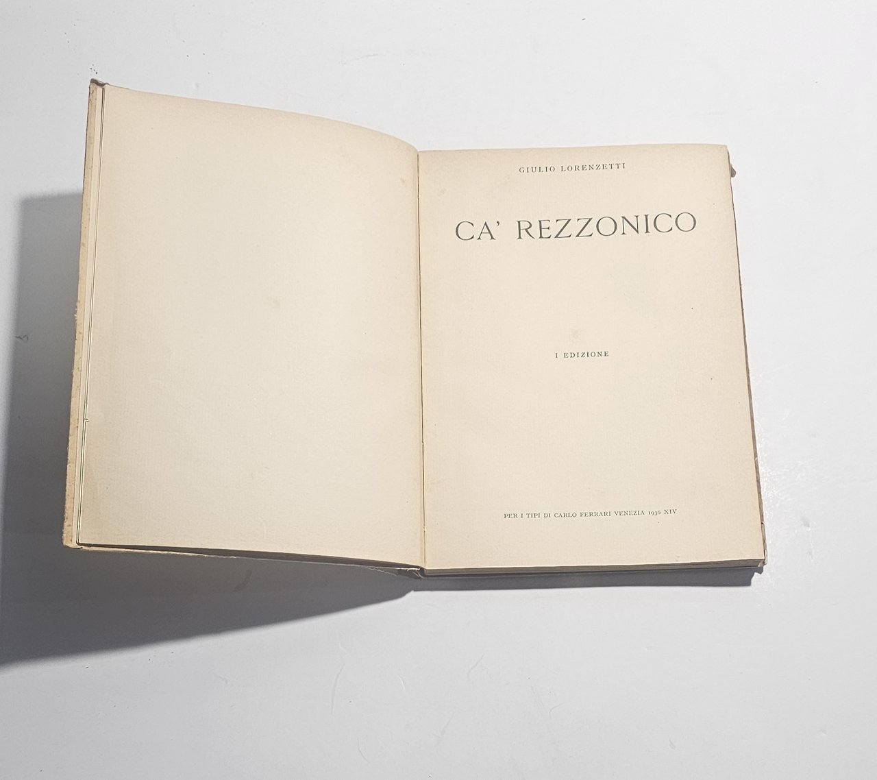 Volume dedicato a Ca' Rezzonico, uno dei più importanti palazzi veneziani sul Canal Grande, scritto da Giulio Lorenzetti e pubblicato a Venezia nel 1936.