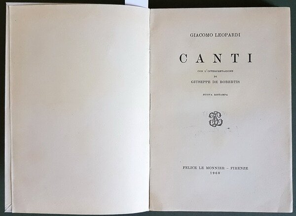 CANTI con l'interpretazione di Giuseppe de Robertis | Rare and modern books | Giacomo Leopardi