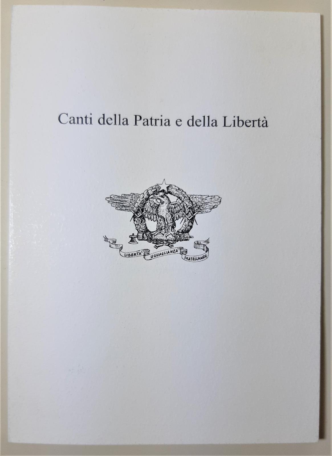 Canti della patria e della Libert‡ a cura di Giovanni Cecconi e Moreno neri commercio realizzata per il collegio Bononia di rito simbolico italiano in occasione dell'incontro di Montefiore Conca 29 settembre 2002. Copertina morbida editoriale interno In ottimo stato numero pagine 50 dimensioni cm 21 x 15