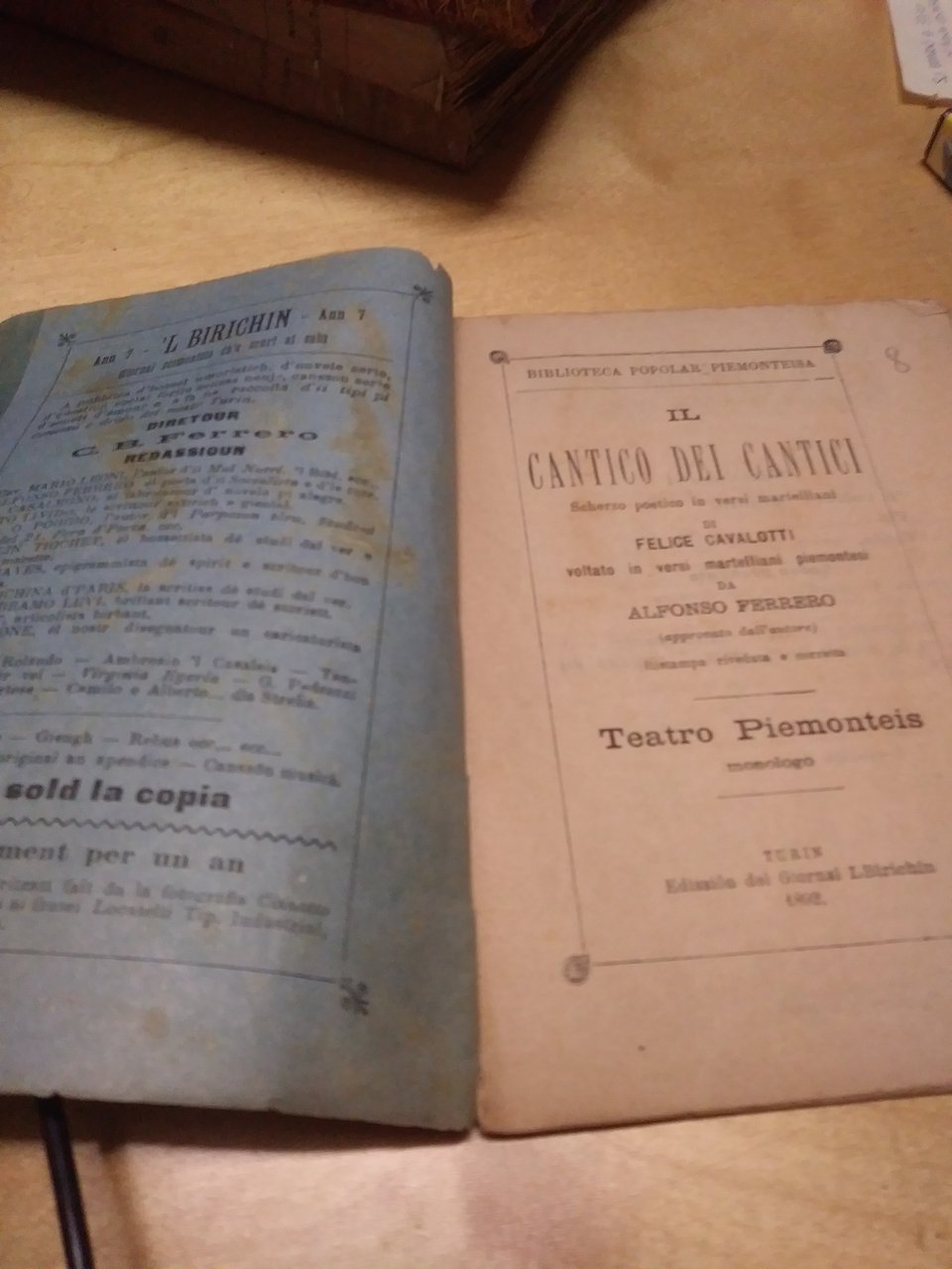 cantico dei cantici scherzo poetico in versi martelliani di felice cavalotti 1892 . Torino, giornal l birichin 1892 , pp.31 pagine ingiallite con fioriture sparse e segni di usura ,