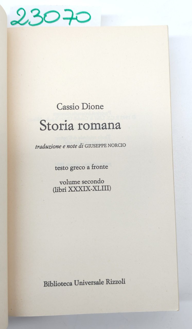 Cassio Dione Storia romana 2° volume BUR Rizzoli 1° edizione 1995