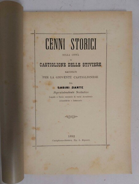 CENNI STORICI sulla città di Castiglione delle Stiviere raccolti per la gioventù castiglionese. | Rare and modern books | Sabini Dante.
