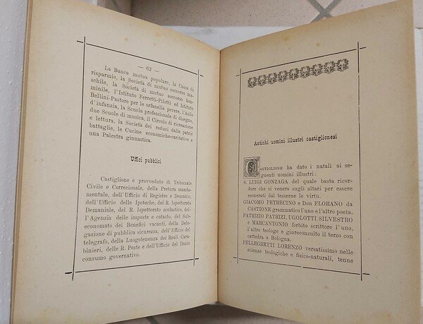 in-8, pp. 112, (4), bross. edit. con cop. fig. Con belle tavv. xilogr. raffiguranti una veduta di Castiglione, ritratti di uomini illustri, monumenti, etc. [451]