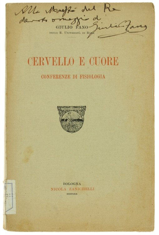CERVELLO E CUORE. Conferenze di fisiologia. | Rare and modern books | Fano Giulio.