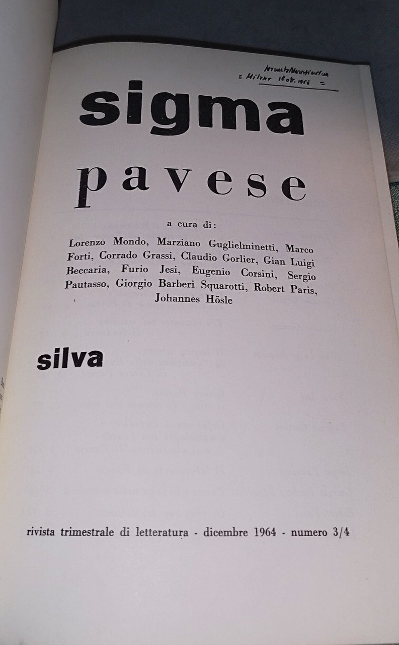 cesare pavese sigma 3-4 rivista trimestale. , silva editore 1964 italiano, 216 °°