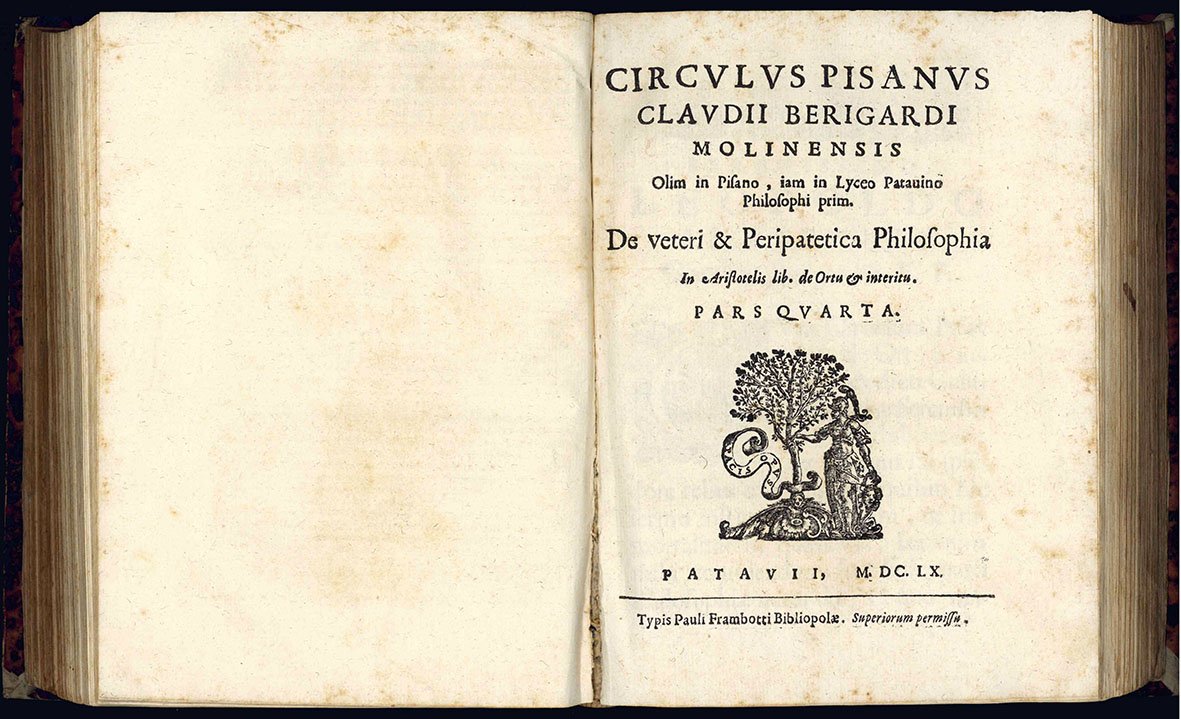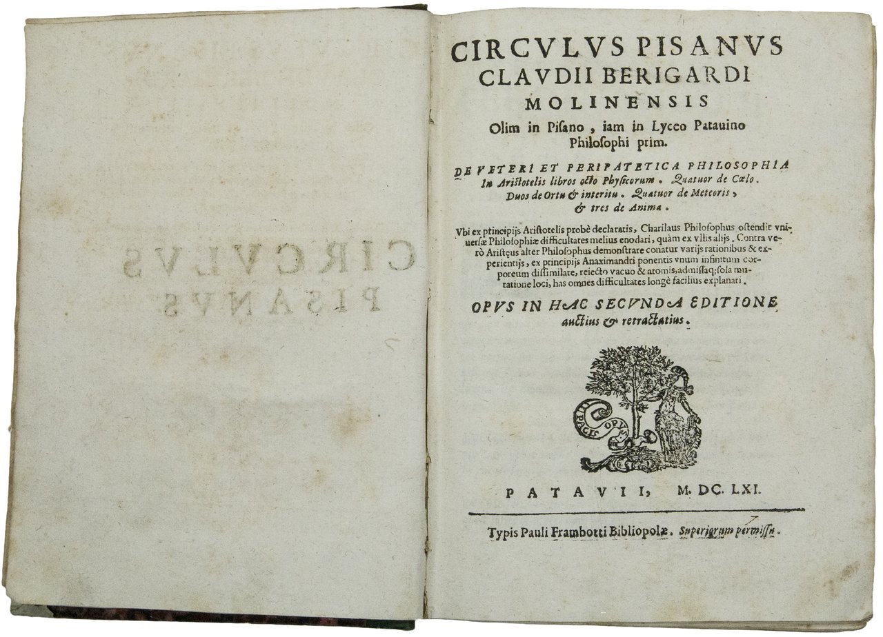 Circulus Pisanus Claudii Berigardi Molinensis olim in Pisano, jam in Lyceo Patavino philosophi prim. De veteri et peripatetica philosophia in Aristotelis libros octo Physicorum. Quatuor de coelo. Duos de ortu & interitu. Quatuor de meteoris, & tres de anima [...] Opus in hac secunda editione auctius & retractatius | Rare and modern books | BÉRIGARD, Claude Guillermet de (ca. 1590-1663)