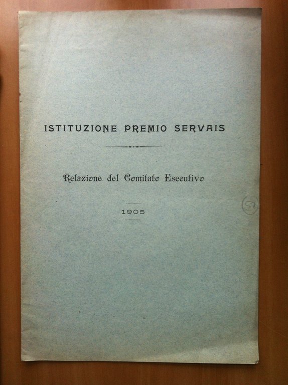 ISTITUZIONE PREMIO SERVAISCittà di TorinoRelazione del Comitato esecutivo190510 pagine - formato 21x31 cmin ottimo stato (40 g)E15901