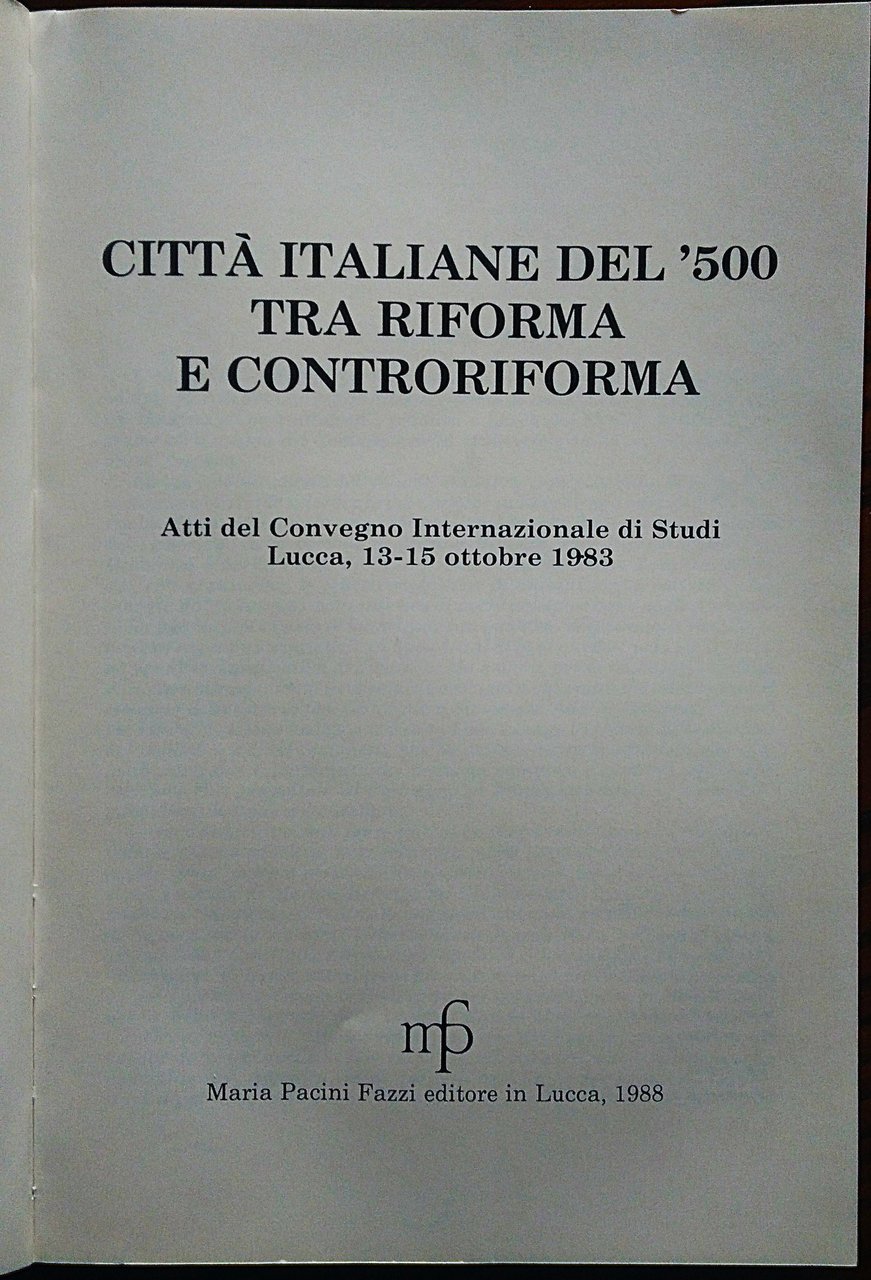 Città italiane del 500 tra riforma e controriforma. Atti del Convegno internazionale di Studi. Lucca, 13-15 ottobre 1983. | Rare and modern books |