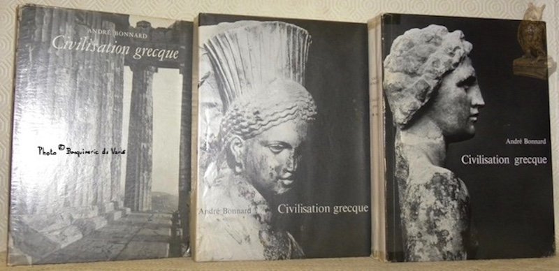 Civilisation grecque. Trois tomes. Tome 1: De l’Iliade au Parthénon. Tome 2: D’Antigone à Socrate. Tome 3: D’Euripide à Alexandrie. | Rare and modern books | Bonnard, André.
