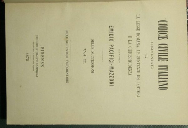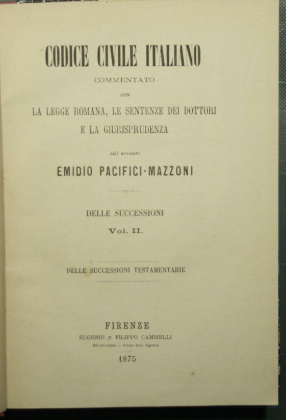 Codice civile italiano - Trattato delle successioni - Delle successioni testamentarie, Voll. II-III-IV | Rare and modern books | Pacifici Mazzoni Emidio