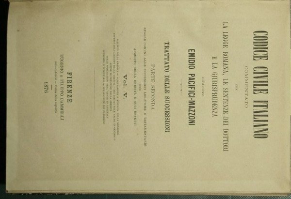 Codice civile italiano - Trattato delle successioni - Parte seconda - Vol. V | Rare and modern books | Pacifici Mazzoni Emidio