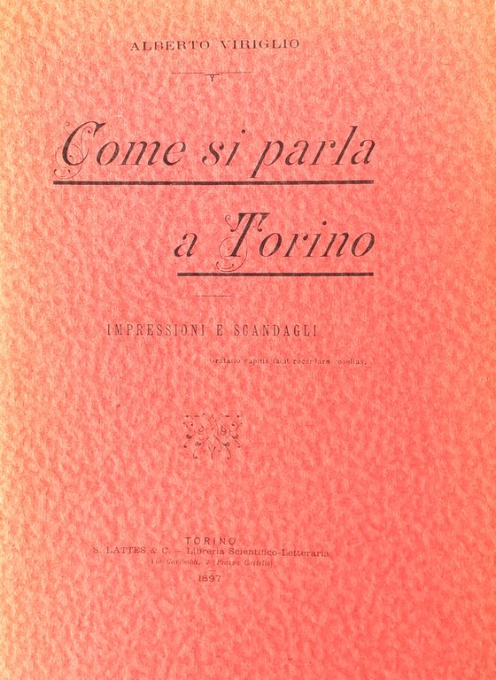 Come si parla a Torino. Impressioni e scandagli | Rare and modern books | Viriglio Alberto, ,Viriglio Alberto