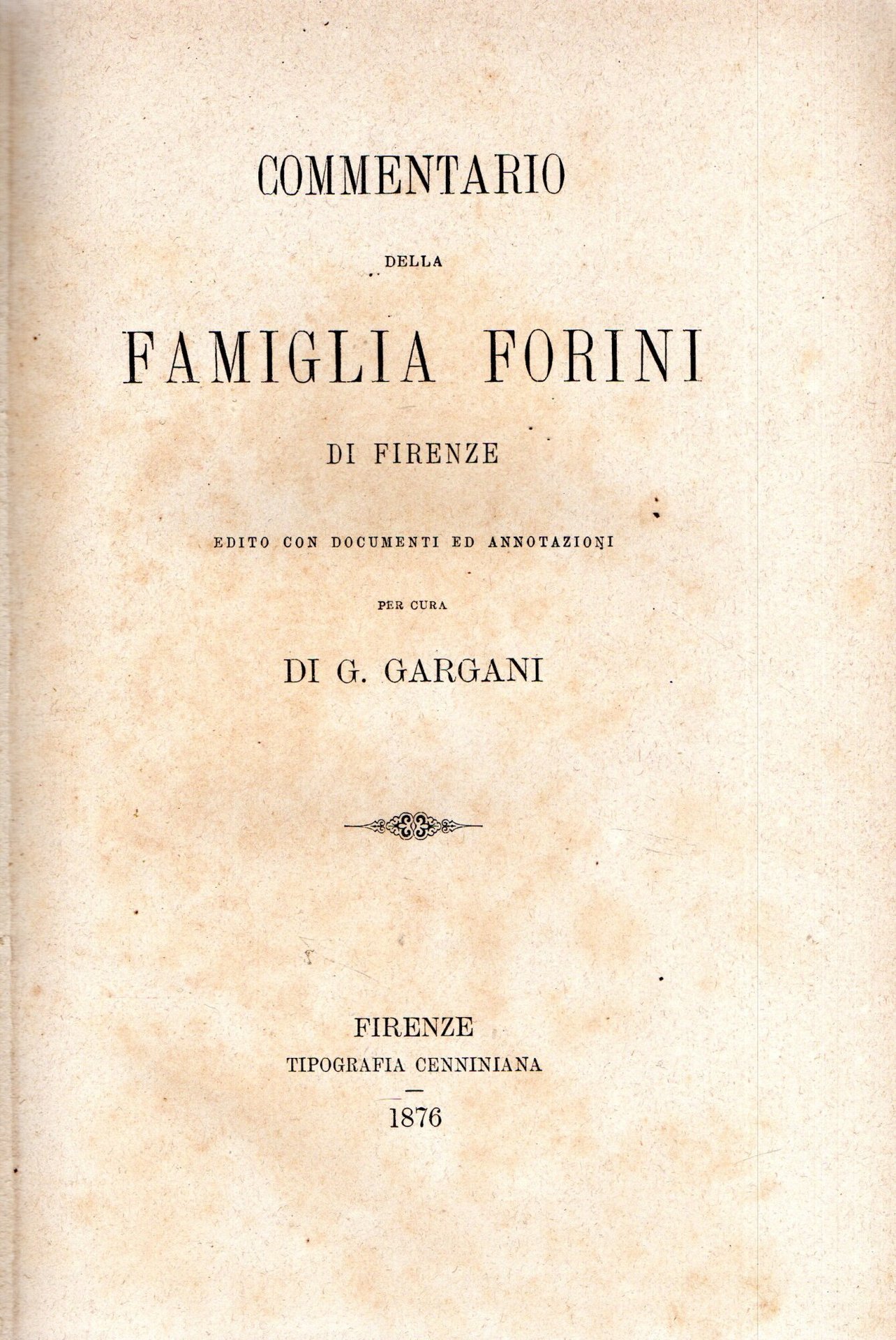 Commentario della Famiglia Forini di Firenze | Rare and modern books | Gargani, G., ,Gargani, G.