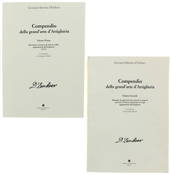 COMPENDIO DELLA GRAND'ARTE D'ARTIGLIERIA. Volume I: Dizionario istruttivo di tutte le robbe appartenenti all'Artiglieria (1732). Volume II: Dissegni di ogni sorta de cannoni et mortari con tutte le Pezze, Stroenti et Utigli | Rare and modern books | D'Embser Giovanni Battista.