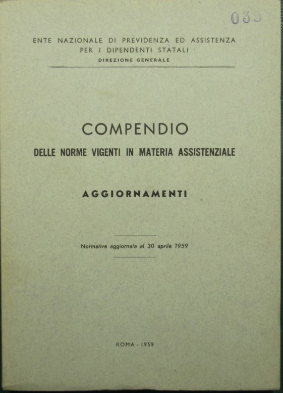Compendio delle norme vigenti in materia assistenziale. Aggiornamenti | Rare and modern books | Ente Nazionale Di Previdenza Ed Assitenza Per I Dipendenti Stata, Li