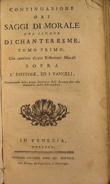 Continuazione dei saggi di morale del signor di Chanteresme che contiene alcune riflessioni morali sopra l'epistole ed i vangeli | Rare and modern books | Nicole Pierre