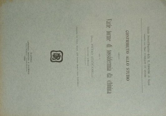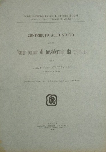 Contributo allo studio delle varie forme di tossidermia da chinina | Rare and modern books | Stancanelli Pietro