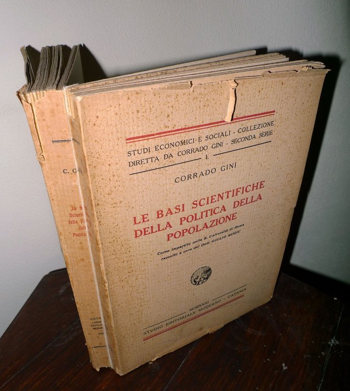 Corrado Gini,LE BASI SCIENTIFICHE DELLA POLITICA DELLAPOPOLAZIONE.Corso impartito nella R. Università di Romaraccolto a cura del Dott. Giulio Rugiu.Studio Editoriale Moderno, Catania 1931,brossura, 25x18 cm., pp.342,STUDI ECONOMICI E SOCIALI / I,collezione diretta da Corrado Gini,peso: kg.1cod.10292CONDIZIONI DEL LIBRO: buone,strappetti ed imperfezioni alla copertinae al dorso,pagine leggermente ingiallite ai margini,quasi completamente intonso (fogli chiusi)