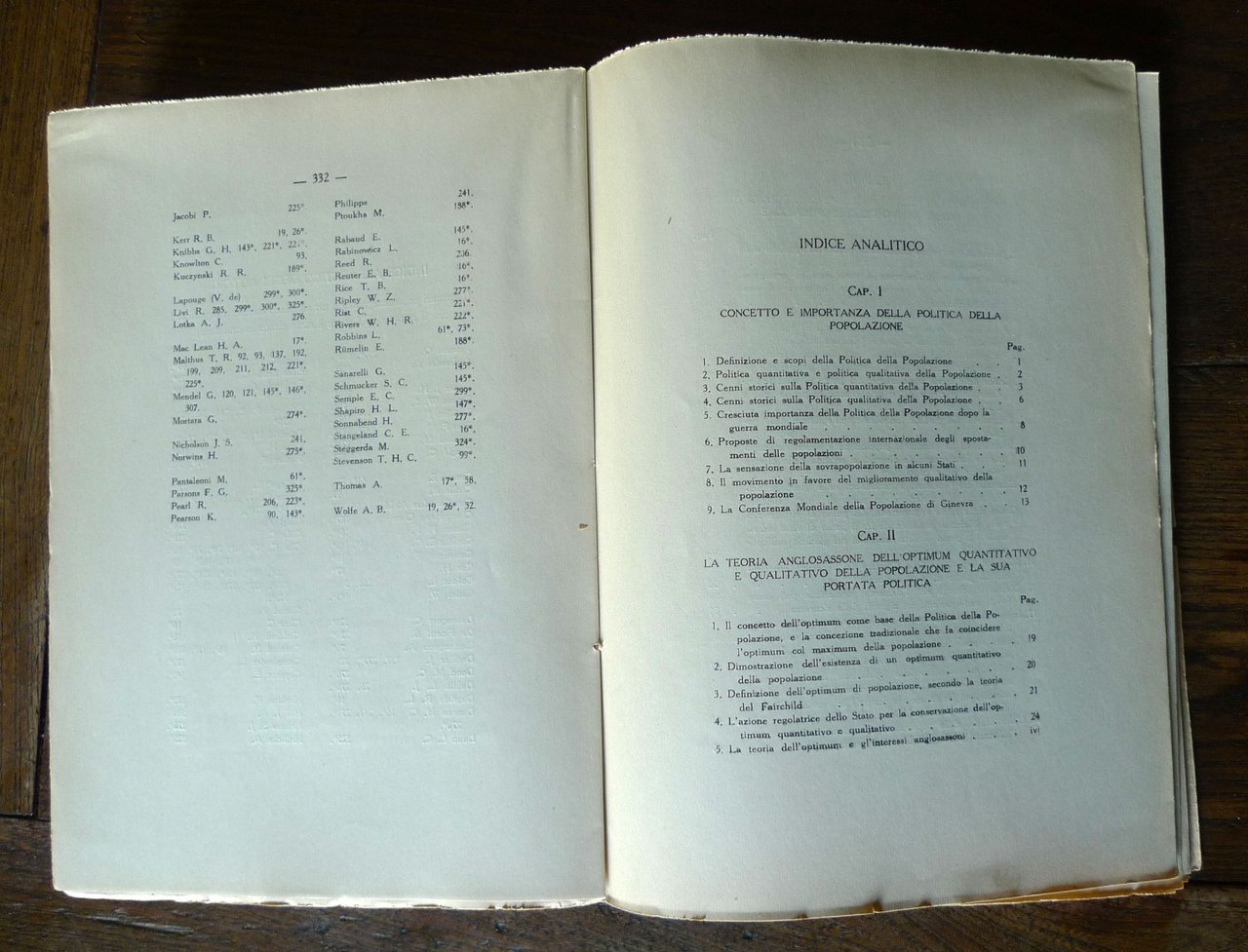 Corrado Gini,LE BASI SCIENTIFICHE DELLA POLITICA DELLA POPOLAZIONE,1931[ECONOMIA | Rare and modern books |