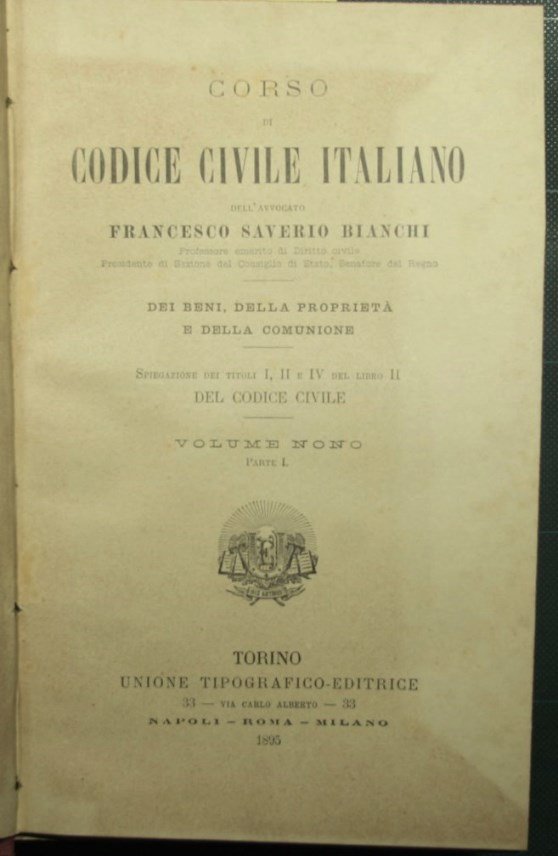 Corso di codice civile italiano - Vol. IX - Dei beni, della proprietà e della comunione | Rare and modern books | Bianchi Francesco Saverio