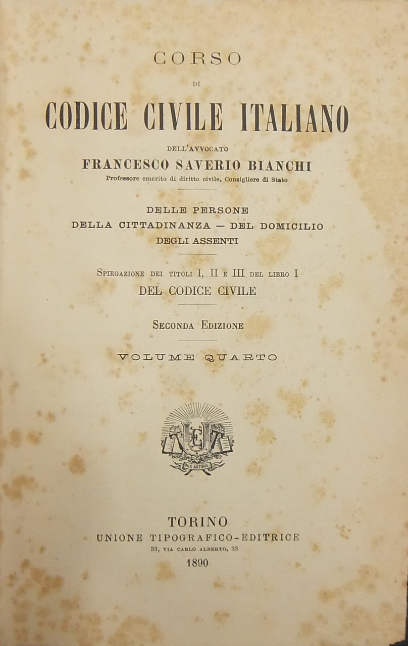 Corso di Codice civile italiano. Vol. IV - Delle persone. Della cittadinanza. Del domicilio. Degli assenti | Rare and modern books | Bianchi Francesco Saverio