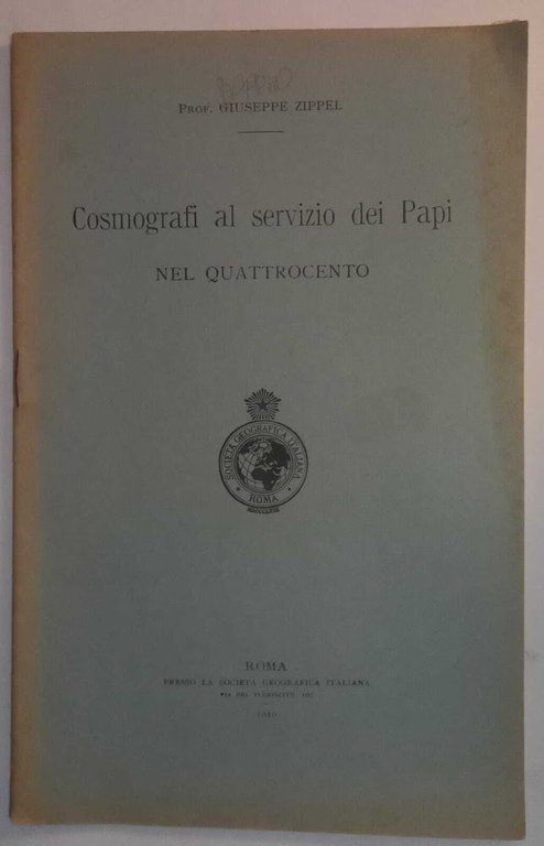 Cosmografi al servizio dei Papi nel quattrocento. Estrattodal Bollettino della Società Geografica Italiana, Fasc. VII, pp. 843-852. Brossura editoriale brunita ai bordi, pagine ingiallite ma in buono stato. 10 Buono (Good) .