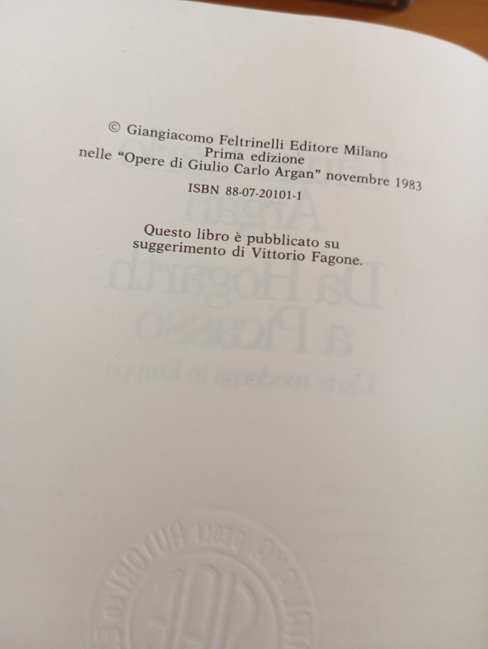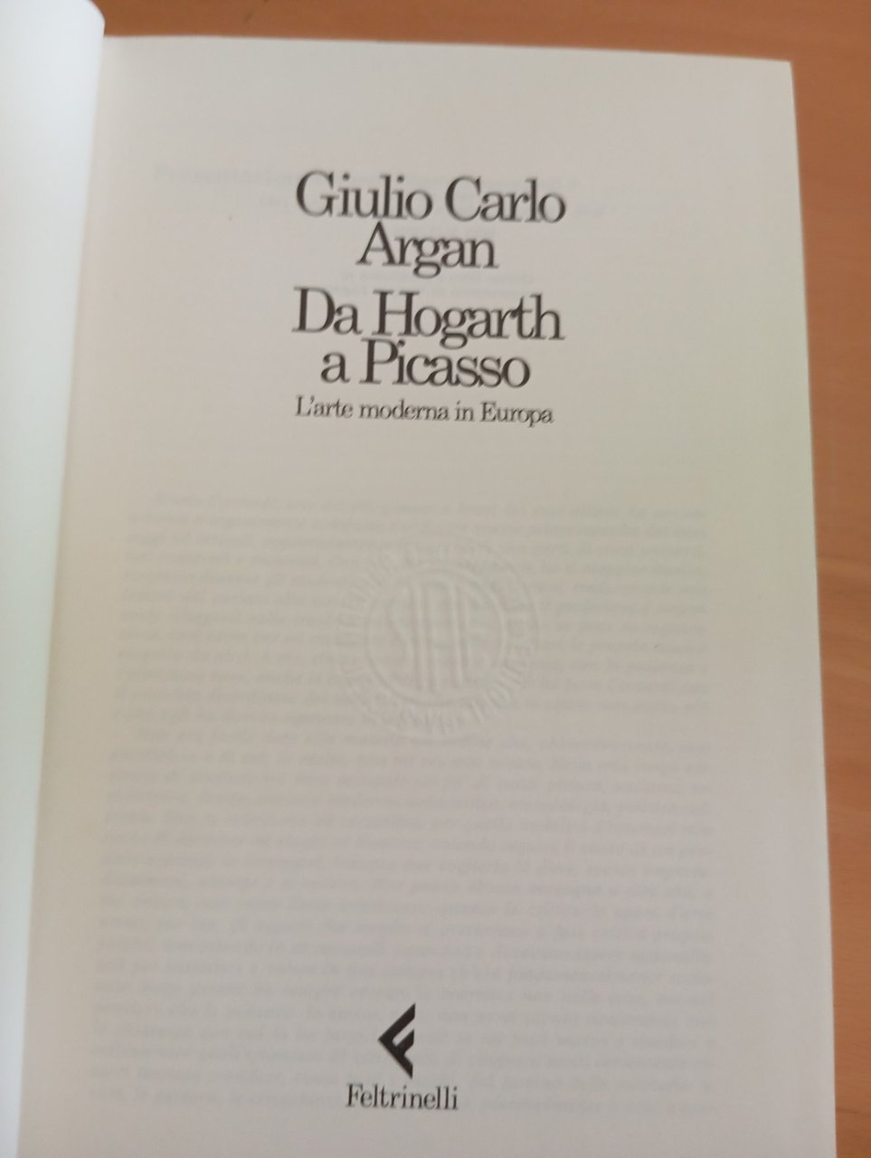 Da Hogarth a Picasso. L'arte moderna europa Giulio Carlo Argan, Feltrinelli 1983