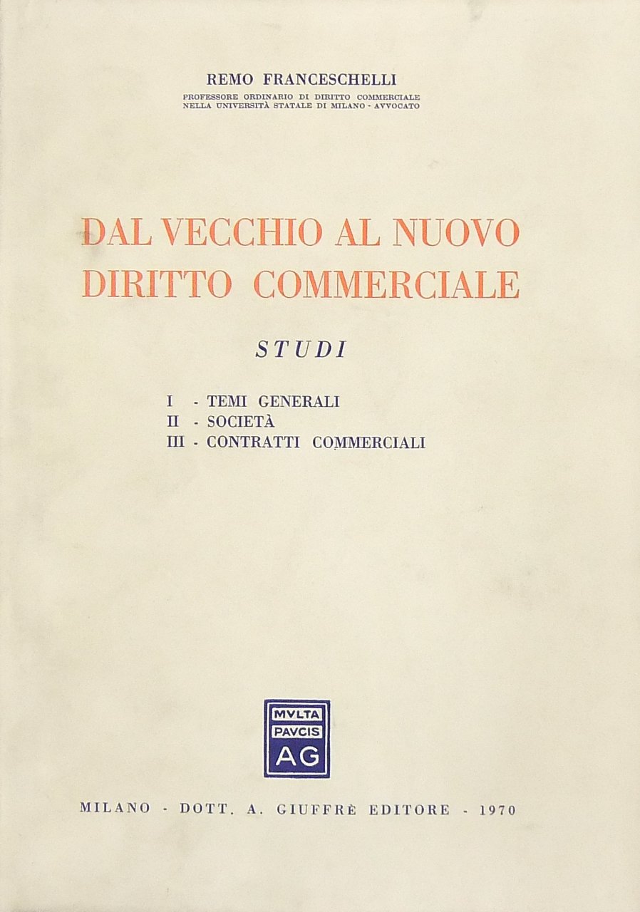 Dal vecchio al nuovo diritto commerciale. Studi I - Temi generali. II - Società. III - Contratti commerciali | Rare and modern books | Franceschelli Remo